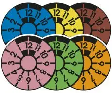 Die Farbe der Plakette wechselt jedes Jahr und gibt ebenfalls Aufschluss über das Jahr der Fälligkeit. Insgesamt gibt es sechs verschiedene Farben: Rosa, Grün, Orange, Blau, Gelb und Braun. Ihre Abfolge wiederholt sich nach sechs Jahren.